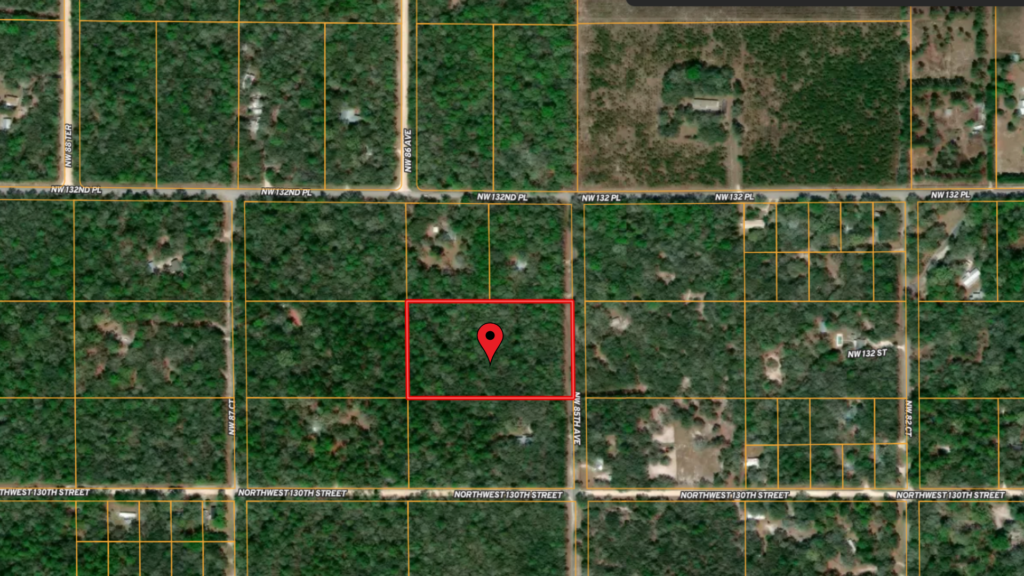 Utilities are typical for rural Florida properties. Power lines run directly in front of the property, making electric connection accessible. A private well will need to be installed for water, and a septic system will need to be installed for sewer. The property has paved road frontage with access from NW 85th Ave, making entry convenient. Setbacks are 30 feet front and rear, and 10 feet on the sides. The land is wooded, giving you natural privacy and a peaceful setting to design your homesite.